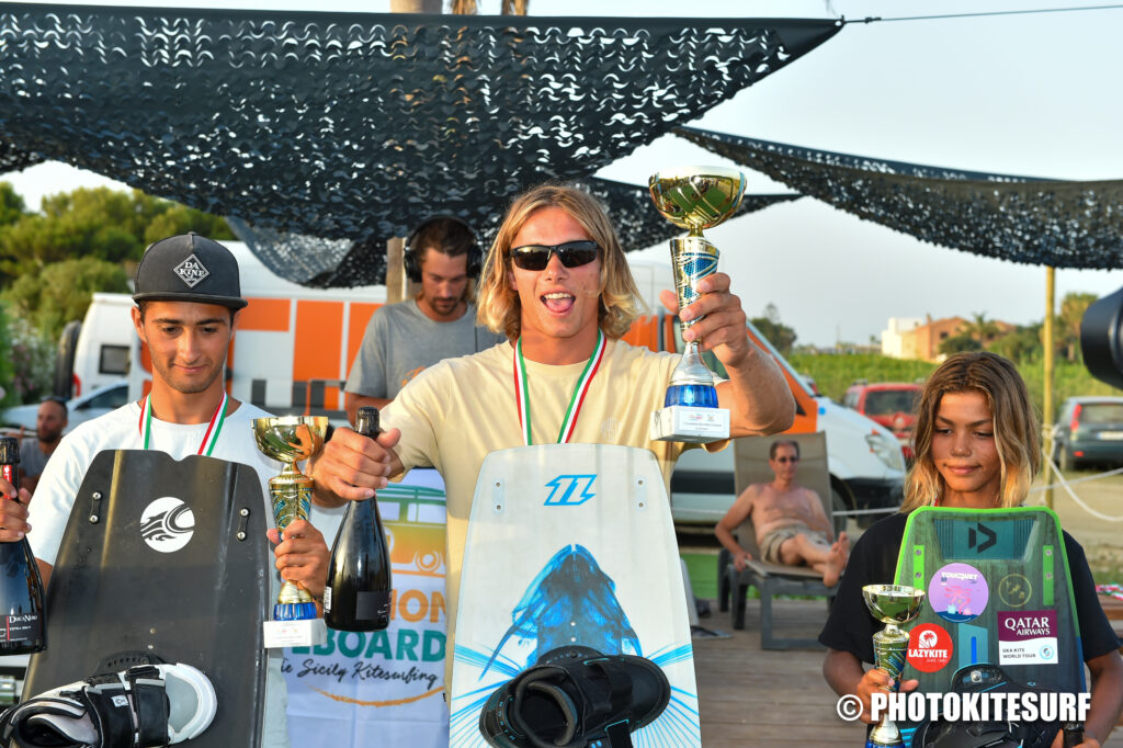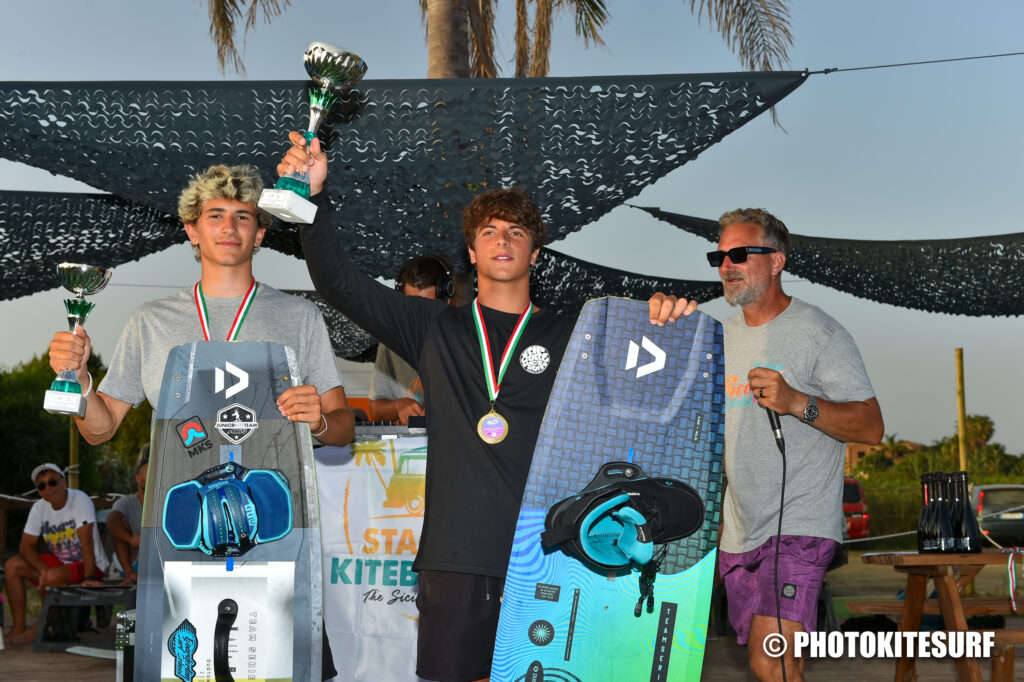 Con il sottofondo del DJ set allestito sul palco sono stati chiamati quindi uno per uno tutti i vincitori del Campionato Italiano 2023. Nella categoria Senior Maschile vince il titolo ancora una Matteo Dorotini. Un ennesimo successo per questo ragazzo di Venezia che già nel 2021 aveva conquistato il titolo di Campione Mondiale Under 21 a Tarifa (Spagna) e nel 2022 aveva vinto il titolo italiano. Oggi torna ancora una volta sul gradino più alto del podio dimostrando di essere tornato competitivo dopo un brutto infortunio avvenuto quasi un anno fa in Arabia Saudita. Ma grande festa anche nelle altre categorie in gara. Tra gli Under 21, primo classificato Alessio Pintus. Tra gli Under 15 la vittoria è andata a Pierfrancesco Rizzello. Tra gli Under 17 il primo classificato è stato Benedek Veres Szente e tra gli Under 19 ha vinto Luca Bronzi. Per i Master sul primo gradino del podio è salito Francesco Rutigliano.
