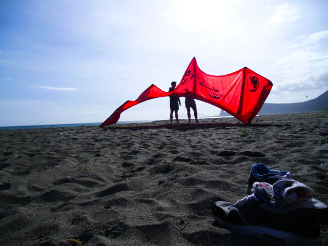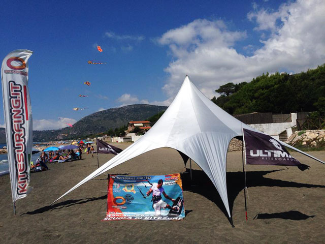 «Sì, certo durante i corsi mettiamo a disposizione degli allievi la nostra attrezzatura. Per quanto riguarda le ali e le tavole utilizziamo il brand italiano Ultimate Kiteboarding, mentre per i trapezi ci affidiamo a materiale Mystic. Le ali in particolare ci danno molte soddisfazioni: hanno un ottimo rapporto qualità-prezzo, certamente migliore rispetto a brand più rinomati che rincarano sul prezzo finale i vari passaggi di produzione e distribuzione e soprattutto la pubblicità. Dopo averle testate in vari anni di corsi posso dire che sono praticamente indistruttibili, nonostante le sollecitazioni e i colpi anche violenti che sappiamo bene possono prendere quando gestite da principianti. Inoltre sono semplici da armare e da trimmare quindi si adattano sempre alle varie condizioni del vento e del kiter, sono stabili in fase di pilotaggio e di lancio-atterraggio e soprattutto divertenti. Infine sono leggere e morbide sulla barra così che non stancano gli allievi durante le lezioni».