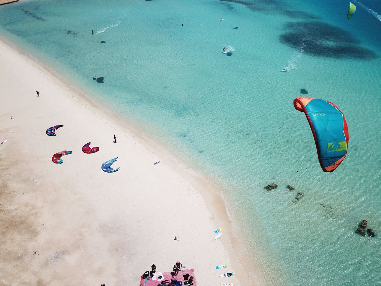 - Noleggio Kite (se non hai la tua attrezzatura, puoi affittare un set completo di 3 kite, tavola e trapezio per 250€ per la settimana)